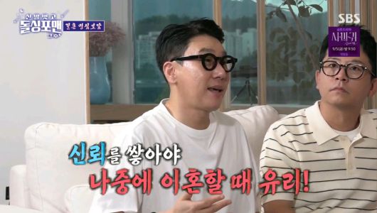 그러자 이상민은 "신뢰를 쌓아야 나중에 이혼할 때 (유리하다)"라며 이혼 경험이 있는 결혼 선배의 예상치 못한 씁쓸한 꿀팁(?)을 전해 웃음을 유발했다.