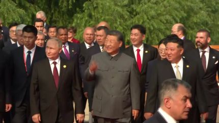 시 주석을 중심으로 오른편에 푸틴 대통령, 왼편에 김정은 위원장이 셨죠.
