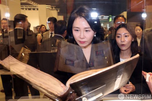 [서울=뉴스핌] 정일구 기자 = 이재명 대통령 부인 김혜경 여사가 3일 오전 서울 강남구 코엑스에서 열린 '프리즈 서울 2025' 페어 투어 행사에서 전시 작품들을 관람하고 있다. 2025.09.03 mironj19@newspim.com |