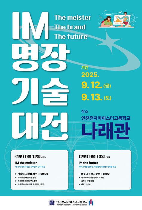 인천전자마이스터고등학교는 12일부터 13일까지 교내 나래관에서 'IM명장기술대전'을 개최한다고 3일 밝혔다.