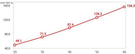 이는 국회 예산정책처(2072년 173.0%)와 한국개발연구원(KDI·2060년 144.8%)의 장기재정 전망과 유사한 수치다.