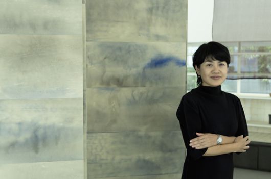 일본 비영리단체 투모로우(Tomorrow)의도쿠다 가요 대표를 2일 서울 효자동 온지음 사옥에서 만났다. 도쿠다 대표 뒤의 그림은 병풍 뒷 부분으로 바다를 상징한 그림이 그려져 있다. 권혁재 사진전문기자 |