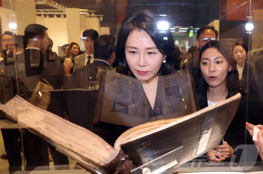 이재명 대통령의 부인 김혜경 여사가 3일 서울 강남구 코엑스에서 열린 '프리즈 서울 2025' VIP 프리뷰 데이를 찾아 작품들을 관람하고 있다. (공동취재) 2025.9.3/뉴스1 ⓒ News1 김성진 기자 |