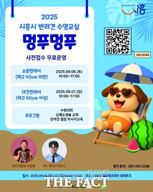 ■ 시흥시는 반려동물 수영 문화교실 ‘멍푸멍푸’를 오는 6~7일 월곶 에코피아 워터파크에서 무료로 운영한다고 3일 밝혔다. ‘원조 개통령’으로 불리는 이웅종 교수가 직접 수영 이론과 실습 강습을 진행한다.