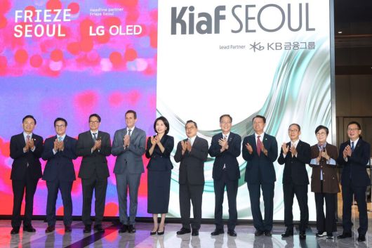 한국 미술 시장에서 가장 큰 규모의 미술품 장터(아트페어)인 프리즈 서울과 키아프 서울의 개막 행사가 3일 오전 서울 강남구 코엑스 1층 키아프 전시장 앞에서 열렸다.
