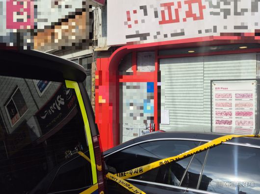 이날 오후 2시께 사고가 난 피자 가게 앞은 현장 감식을 위한 과학수사대 차량 3대와 교통 통제를 하는 기동순찰대원 그리고 사고 소식을 듣고 현장을 찾은 인근 주민과 상인들로 혼잡함을 빚었다.