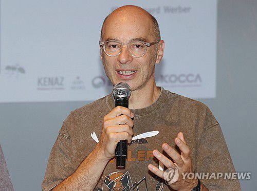 베르베르는 "개미는 다 똑같이 생겨서 개미를 묘사하는 게 굉장히 어려웠을 것"이라며 "여기 계신 여러분이 프랑스에 오셔도 모든 프랑스인이 똑같이 생겼다고 생각하실 테고, 저도 처음 한국에 왔을 때 한국인이 다들 똑같이 생겼다고 느꼈다"고 농담했다.