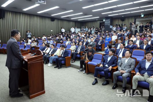 [서울=뉴시스] 고승민 기자 = 김병기 더불어민주당 원내대표가 3일 서울 여의도 국회에서 열린 정책의원총회에서 발언하고 있다. 2025.09.03. kkssmm99@newsis.com |