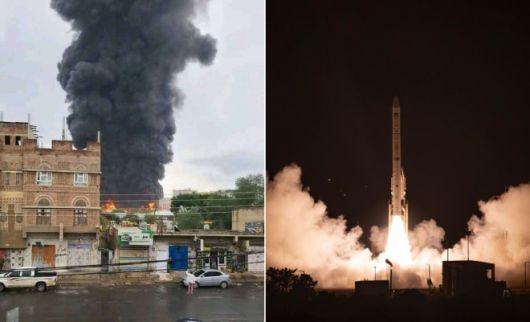 지난달 28일 예멘 사나에서 이스라엘 공습으로 후티 고위 인사 최소 12명이 사망한 현장(왼쪽)과 이달 2일 이스라엘 팔마힘 공군기지에서 정찰위성 오페크-19가 발사되는 장면(오른쪽). 출처=엑스·이스라엘 국방부 |