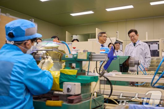 (서울=뉴스1) 허경 기자 = 이재명 대통령이 3일 경기 안산시 새솔다이아몬드공업을 방문해 현장을 둘러보고 있다. (대통령실 제공. 재판매 및 DB 금지) 2025.9.3/뉴스1