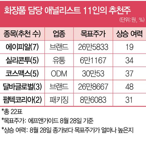 에이피알 다음은 똑같이 5표를 받은 실리콘투와 코스맥스다.