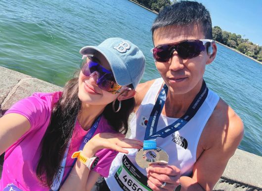 첫 10km 마라톤를 완주한 다니엘은 션과 시드니의 맑은 호수와 초록 야외 공원을 배경으로 나란히 완주 메달을 들고 밝은 표정으로 현장 사진을 남겼다.