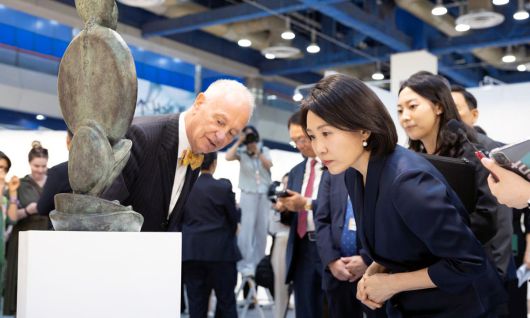 이재명 대통령의 배우자인 김혜경 여사(오른쪽)가 3일 서울 강남구 코엑스에서 열린 ‘키아프·프리즈 서울 2025’ 개막식에 참석해 전시품을 살펴보고 있다. 김 여사는 이날 행사를 관람하며 “한국적인 멋이 녹아들어 있는 작품도 많다. 가장 한국적인 것이 가장 세계적인 것”이라고 평가했고 국내 미술시장 성장 방안 등에 대한 의견도 청취했다. 대통령실 제공 ⓒ 세상을 보는 눈, 세계일보