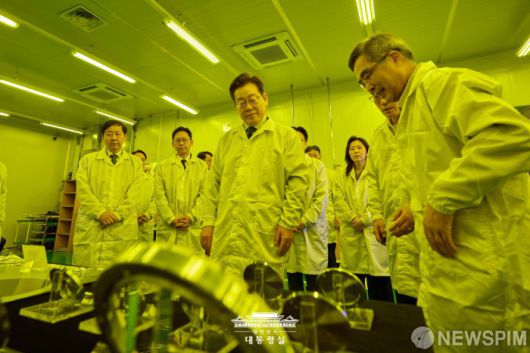 [서울=뉴스핌] 이재명 대통령이 3일 경기 안산시 새솔다이아몬드공업을 방문해 현장을 둘러보고 있다. [사진=대통령실] 2025.09.03 photo@newspim.com