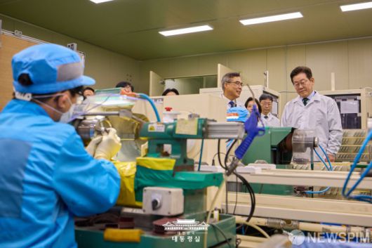 [서울=뉴스핌] 이재명 대통령이 3일 경기 안산시 새솔다이아몬드공업을 방문해 현장을 둘러보고 있다. [사진=대통령실] 2025.09.03 photo@newspim.com