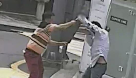2018년 6월 7일 서울 강남구 한 골목에서 서촌 궁중족발 사장 김모씨가 건물주 이모씨에게 둔기를 휘두루는 모습. (사진=연합뉴스) |