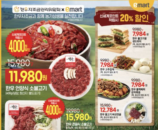 또 암소한우는 등심 1+등급 100g을 정상가 1만2960원에서 행사카드 결제 시 50% 할인한 6480원에 판매하는 등 전품목 반값 할인 혜택을 준비했다. 6일과 7일에는 수입 삼겹살 100g을 890원에, '파머스픽 하우스 감귤(1.4㎏)'을 9900원에 구매할 수 있다.