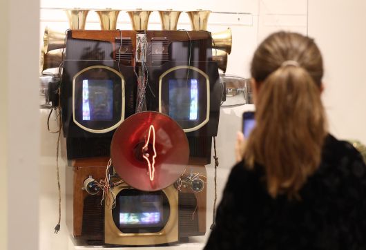 ‘프리즈 서울’이 3일 서울 강남구 코엑스에서 개막한 가운데 관객들이 백남준의 작품(위쪽 사진)과 이불의 작품을 감상하고 있다. 올해 4회째를 맞은 프리즈 서울은 현대미술품을 다룰 뿐 아니라 고미술품을 소개하는 ‘프리즈 마스터스’와 지역 작가를 소개하는 ‘포커스 아시아’ 등의 섹션도 마련했다. 뉴스1 |