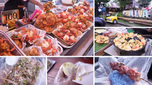다섯째, 기타 다양한 간식들. 해산물 타코야키, 메추리알 꼬치, 해파리 꼬치까지 독특한 음식이 줄지어 있으며, 바비큐 가게와 푸짐한 현지 식당도 자리한다. 광장 한편에는 테이블이 마련돼 있어 원하는 음식을 사와 자유롭게 즐길 수 있다.