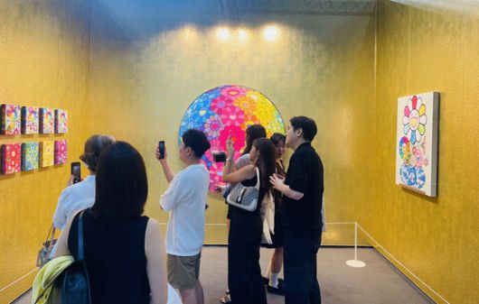 3일 프리즈 서울의 페로탕갤러리에선 일본 작가 무라카미 다카시의 회화 12점이 판매됐다. 마크 브래드포드, 게오르그 바셀리츠 등 ‘블루칩’ 작가의 인기도 여전했다. 이은주 문화선임기자 |