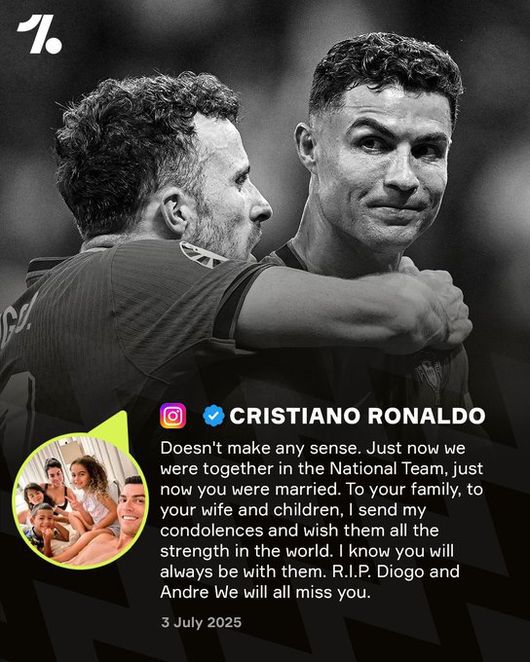 그러나 호날두의 모습은 그곳에 없었다. 그는 SNS를 통해 “믿기 힘들다. 방금 전까지 대표팀에 함께했는데… 가족에게 애도를 전한다. 디오구와 안드레, 편히 쉬길 바란다(R.I.P)”라며 슬픔을 표현했지만 장례식에는 참석하지 않았다.
