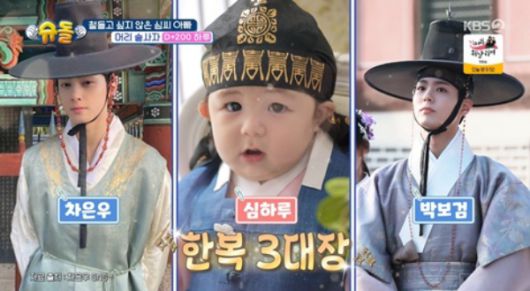 200일 기념 촬영에 나선 하루는 박보검, 차은우를 이을 꽃도령으로 떠올랐다. 한복을 입은 하루의 사진에 심형탁은 “와 누구 아들이야”라며 감탄을 금치 못했고, 스튜디오에서 최지우 역시 “아역 배우인 하루가 자라서 박보검, 차은우가 된 것 같다”라며 박보검, 차은우를 이을 한복 비주얼 3대장임을 인정했다.