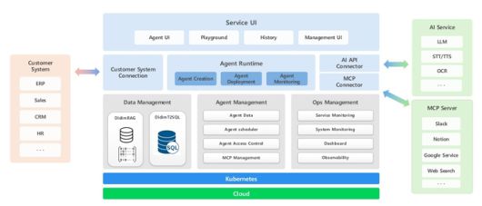 또한 다양한 외부 자원과의 연계를 지원하기 위해 MCP(Model Context Protocol) 표준을 채택했다. 이를 통해 MCP를 지원하는 데이터, 파일, API, 서비스는 모두 에이전트 내에서 쉽게 활용할 수 있으며, 기업 내부 자원과 외부 데이터 소스를 아우르는 확장성이 보장된다. 이와 함께 DidimT2SQL 연계를 통해 SQL 기반 데이터도 MCP 표준 환경에서 자유롭게 사용할 수 있어 데이터 접근성과 활용 폭이 크게 확대된다.