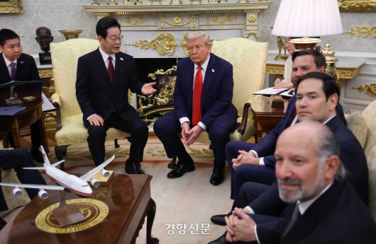 이재명 대통령과 도널드 트럼프 미국 대통령이 지난달 25일(현지시간) 미국 워싱턴 백악관 오벌오피스에서 한·미 정상회담을 하고 있다. 김창길 기자 |