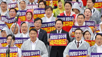 오늘은 의원과 사무처, 당직자들은 물론 당 원외 관계자들과 당원까지 국회 본관 앞에 보여 피켓 시위를 진행하고 있는데요.