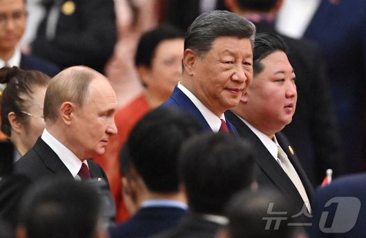 김정은 북한 노동당 총비서와 시진핑 중국 국가주석, 블라디미르 푸틴 러시아 대통령이 3일 중국 베이징 인민대회당에서 열린 리셉션 행사에 참석했다. 이날 앞서 이들은 톈안먼 일대에서 열린 제2차 세계대전 승전 80주년 기념 열병식 행사에 참석했다. 2025.09.03 ⓒ AFP=뉴스1 ⓒ News1 최종일 선임기자 |