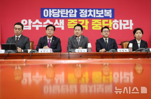 송언석 원내대표는 "특검이 제시한 압수수색 영장은 법치의 기본적인 사안을 완전히 무시한 영장"이라며 "수사가 아니라 저급한 폭력"이라고 했다.