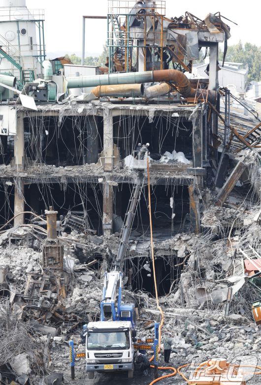 지난달 20일 광주 광산구 금호타이어 광주공장에서 합동감식과 해체 공사가 진행되고 있다. 2025.8.20/뉴스1 ⓒ News1 김태성 기자 |