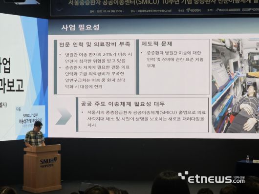 강진용 서울시 보건의료정책과장은 'SMICU 사업 10년 운영 경과보고'에서 “병원간 이송을 통해 내원한 환자는 이송을 겪지 않은 환자에 비해 사망률이 약 2배 높다”라며 “병원 전 단계 의료서비스 표준화와 최적화를 달성해 생존률이 향상됐다”고 말했다.