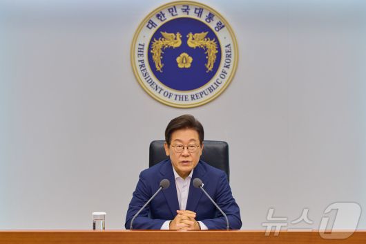 이재명 대통령이 14일 서울 용산 대통령실 청사에서 열린 제7회 수석·보좌관 회의에서 발언을 하고 있다. (대통령실 제공. 재판매 및 DB금지) 2025.8.14/뉴스1 ⓒ News1 이재명 기자 |