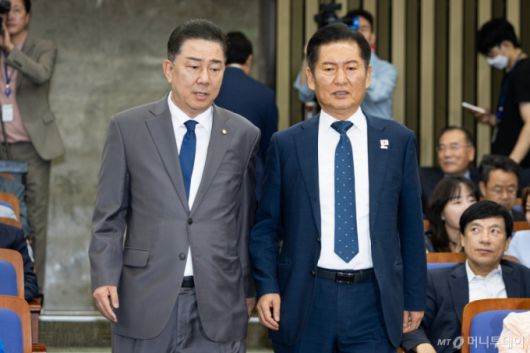 (서울=뉴스1) 유승관 기자 = 정청래 더불어민주당 대표와 김병기 원내대표가 3일 서울 여의도 국회에서 열린 정책의원총회에 참석하고 있다. 2025.9.3/뉴스1 Copyright (C) 뉴스1. All rights reserved. 무단 전재 및 재배포, AI학습 이용 금지. /사진=(서울=뉴스1) 유승관 기자 |