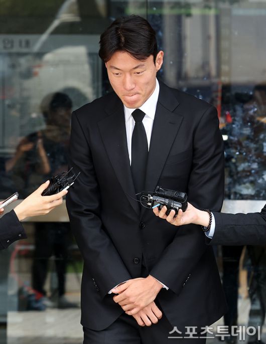 [스포츠투데이 팽현준 기자] 불법 촬영 혐의를 받는 축구선수 황의조가 4일 서울중앙지법에서 열린 2심 선고기일에 출석 후 취재진의 질문에 답하고 있다. 2025.09.04. [스포츠투데이 팽현준 기자 sports@stoo.com]
