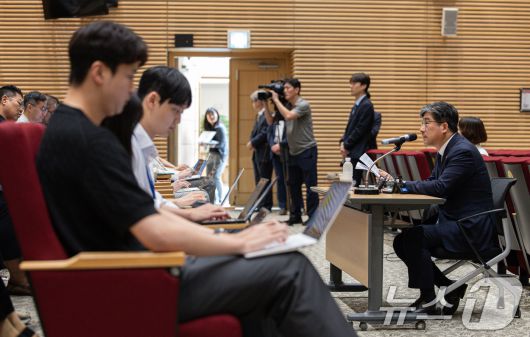 (서울=뉴스1) 이재명 기자 = 류덕현 대통령실 재정기획보좌관이 4일 서울 용산 대통령실에서 열린 기자간담회에서 발언을 하고 있다. 2025.9.4/뉴스12expulsion@news1.krCopyright ⓒ 뉴스1. All rights reserved. 무단 전재 및 재배포, AI학습 이용 금지.