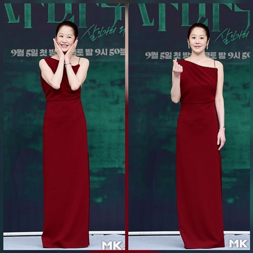 배우 고현정이 우아한 버건디 드레스로 무대를 물들였다. 1989년 미스코리아 34번으로 무대에 섰던 그는 30여 년이 지난 지금도 여전한 아우라를 발산하며 ‘사마귀: 살인자의 외출’ 제작발표회 현장을 압도했다.