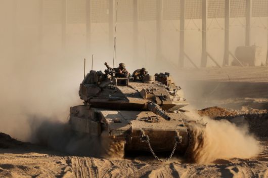 이스라엘군 전차가 2025년 9월 3일(현지시간) 가자지구 인접 남부 국경 장벽을 따라 이동하고 있다. 이스라엘은 가자시티 공세를 앞두고 지난 2일부터 예비군 소집령을 본격화하며 병력 증강에 나섰다. AFP 연합뉴스 |