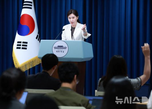 [서울=뉴시스] 고범준 기자 = 강유정 대변인이 29일 서울 용산 대통령실 청사에서 국무회의 관련 브리핑을 마치고 출입기자 질문을 받고 있다. 2025.08.29. bjko@newsis.com |