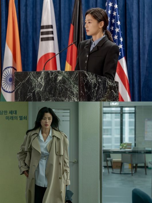 '북극성'에서 대선 후보 피격 사건의 배후를 쫓으며 단단하고 강인한 모습을 선보일 전지현의 변신에 기대가 쏠리고 있는 가운데, 작품을 첫 공개하는 제작발표회에서도 변함없는 패셔니스타의 자태로 시선을 강탈했다.