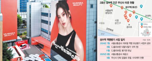 이에 따라 무신사는 향후 3년간 성수역 출입구와 승강장 역명판 등에 자사 이름을 추가할 예정이다. 성수동을 거점으로 사업을 확장해온 무신사는 현재 1800여 명이 근무하는 본사를 비롯해 성수동 일대 곳곳에 패션·뷰티·라이프스타일 매장을 운영하고 있다. 내년 상반기에는 지하 1층~지상 4층 총 2000평 규모의 초대형 편집숍 ‘무신사 메가스토어 성수’를 오픈한다. 무신사 관계자는 “방문객 편의를 위해 역명 병기 후속 절차를 진행할 계획”이라고 말했다.