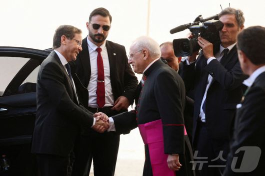 (바티칸 로이터=뉴스1) 심서현 기자 = 레오 14세 교황과 만나기 위해 4일(현지시간) 바티칸을 방문한 이츠하크 헤르초그 이스라엘 대통령이 레오나르도 사피엔자 몬시뇰 교황청 궁내원 의전 담당자와 인사하고 있다. 2025.09.04. ⓒ 로이터=뉴스1 Copyright ⓒ 뉴스1. All rights reserved. 무단 전재 및 재배포, AI학습 이용 금지.