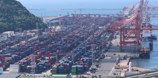 지난달 31일 부산항 신선대부두에 컨테이너가 가득 쌓여 있다./연합 |
