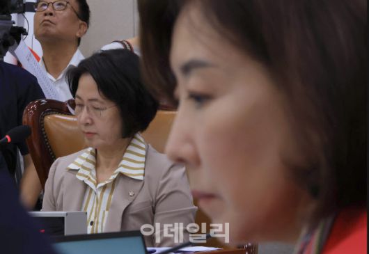 [이데일리 노진환 기자] 4일 서울 여의도 국회에서 법제사법위원회 전체회의가 열렸다. 추미애(왼쪽) 법사위원장과 나경원 국민의힘 의원이 시선을 마주치치 않고 있다. |
