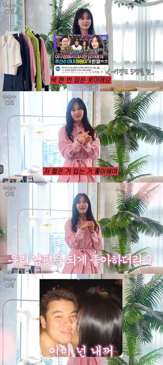 또 제작진이 남편 추신수는 하원미가 어떤 옷 입는 것을 좋아하냐고 묻자, 하원미는 "저희 남편은 저 짧은 거 입는 거 좋아한다. 짧은 치마 같은 거"라고 말해 눈길을 끌었다.