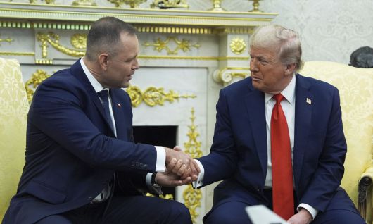 美·폴란드 정상 악수 도널드 트럼프 미국 대통령(오른쪽)이 3일(현지시간) 워싱턴 백악관 집무실에서 카롤 나브로츠키 폴란드 대통령과 만나 악수 하고 있다. 워싱턴=AP연합뉴스 |