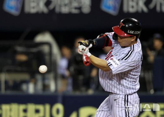 [서울=뉴시스] 배훈식 기자 = 2일 오후 서울 송파구 잠실야구장에서 열린 2025 신한 쏠뱅크 KBO리그 LG 트윈스와 롯데 자이언츠의 경기, 8회말 LG 문성주가 경기 4번째 안타를 때려내고 있다. 2025.09.02. dahora83@newsis.com |