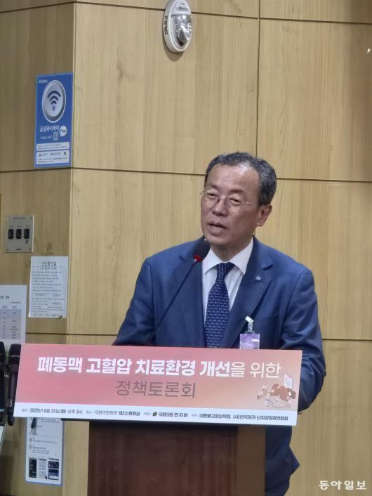 정 교수는 “폐동맥고혈압은 진단받은 처음부터 효과적인 약을 확실하게 사용해 초반에 잘 조절해야 되는 질환이다. 그런데 이미 나빠진 상황에서 아무리 좋은 약을 투여해도 그땐 늦는다”고 지적했다. 일본은 바로 치료제를 도입해 사용하면서 폐동맥고혈압 질환 5년 생존율이 95%나 되고 있지만 국내에서는 효과 좋은 약이 여전히 공급되지 않으면서 5년 생존율이 71% 정도로 많이 뒤처진 상황이다.