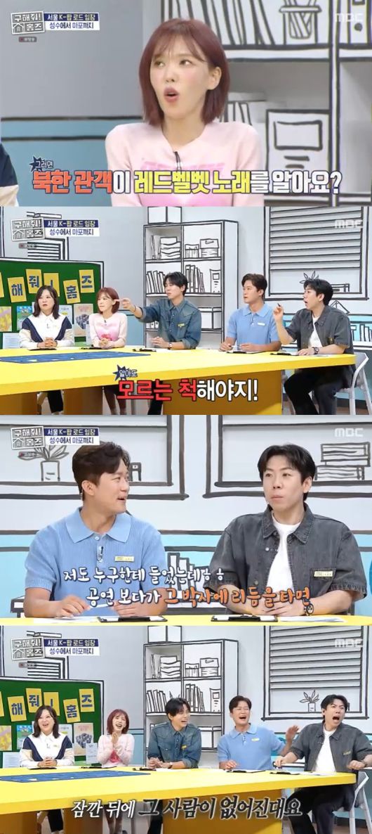 이날 웬디는 2018년 레드벨벳이 북한에서 공연을 했던 경험을 언급했다. 자료화면이 나오자 박나래와 장동민은 "북한에서 했냐", "북한에서 '빨간 맛'을?"이라며 놀라워했다.